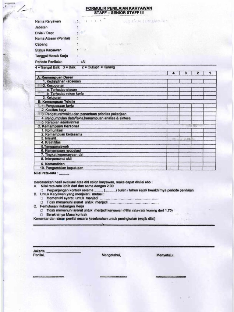 Contoh Form Penilaian Karyawan Cara Mengisinya